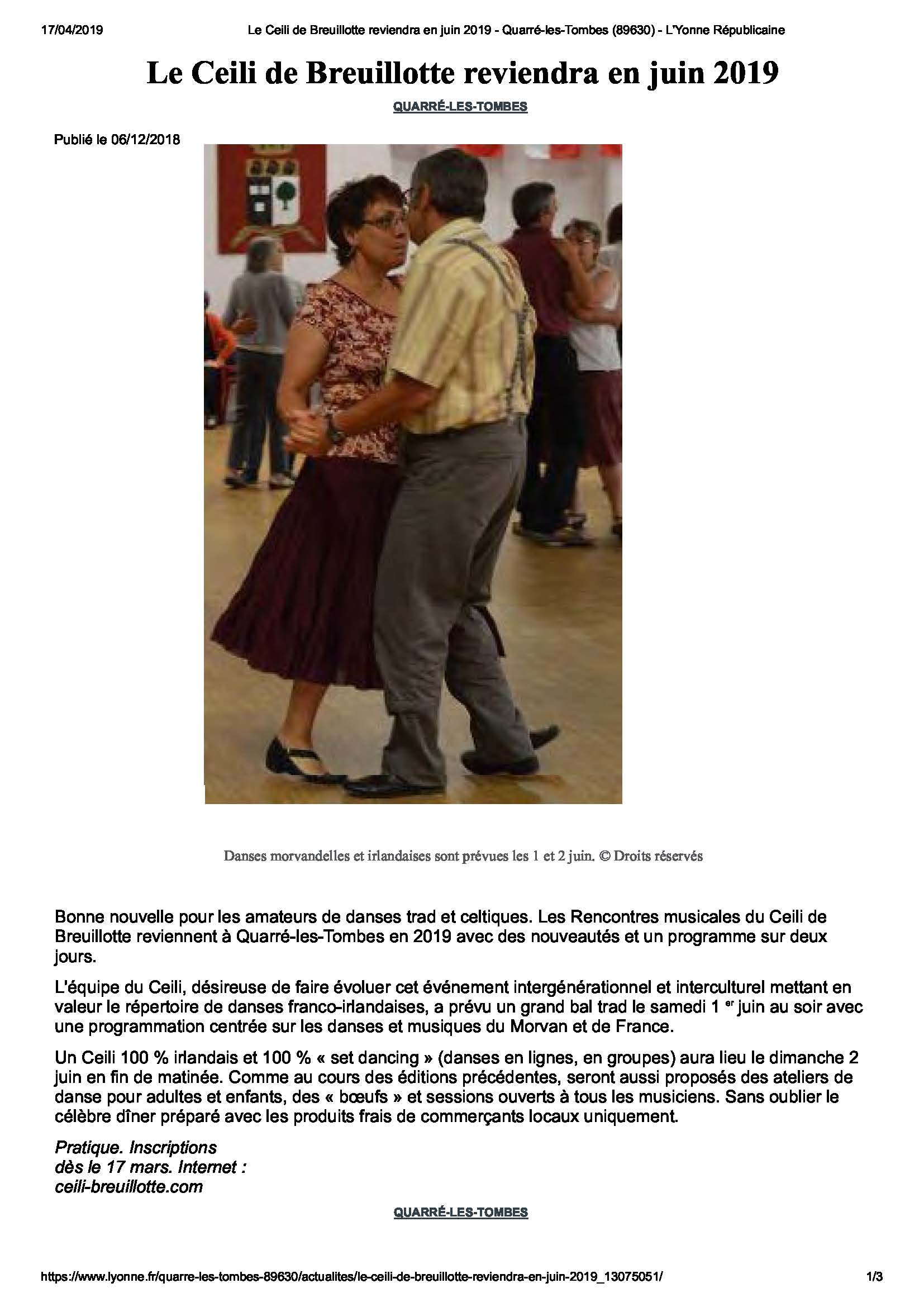 "Le Ceili de Breuillotte reviendra en juin 2019"